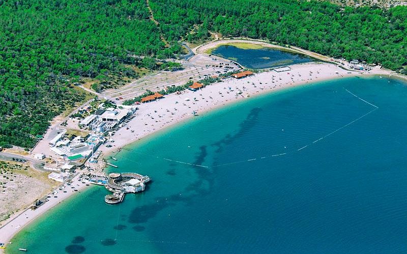 Zrće beach is located to the southeast of Novalja and is a special story, and it is the most beautiful and most attractive of Novalja’s beaches. Its coastal part is a spacious pebbly area which at the height of the season can accommodate many thousands of bathers. Access to the sea is pebbly, and due to the steep drop to the sea bottom, the beach is extremely deep.
